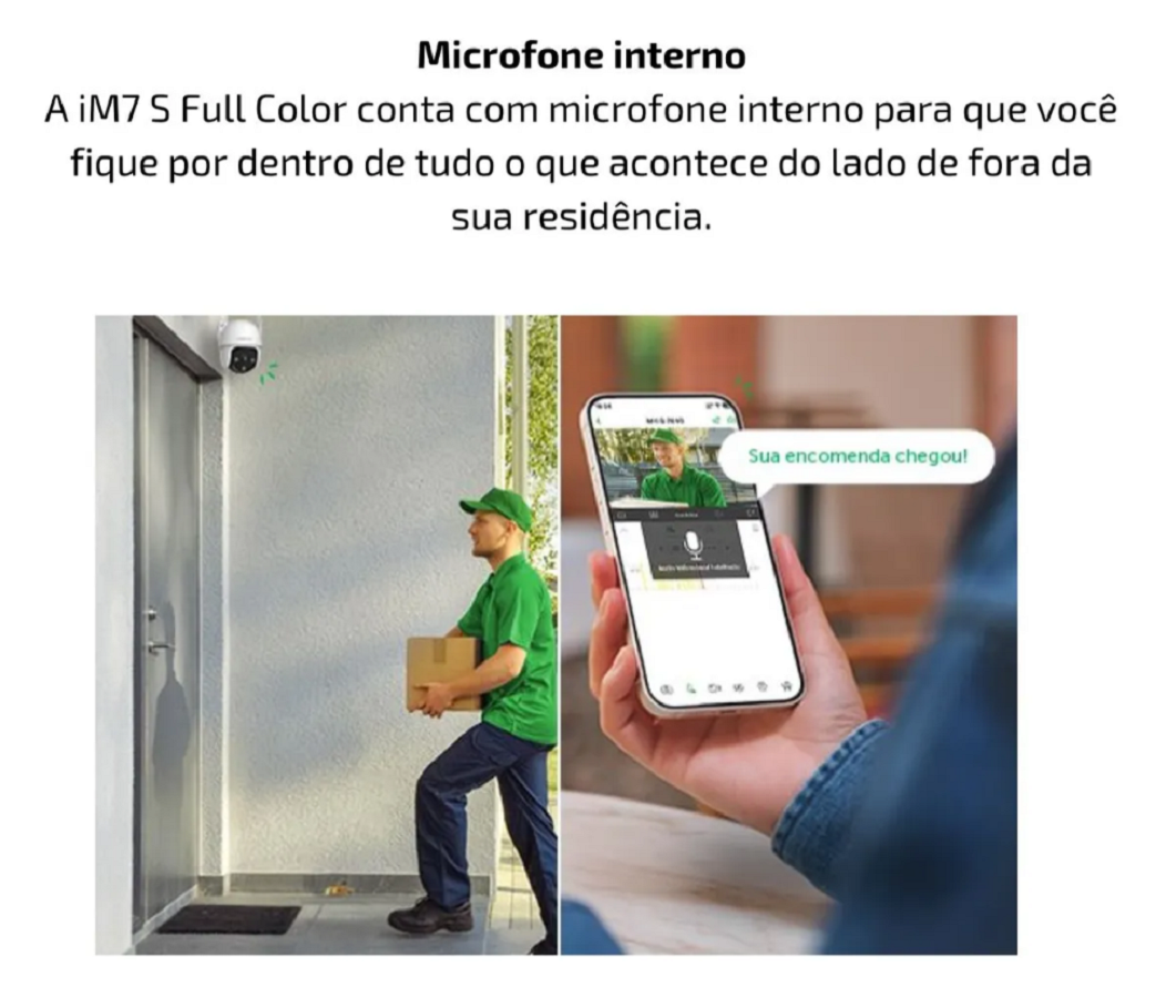 A câmera de segurança iM7 S Full Color foi desenvolvida para cuidar da área externa da sua residência/comércio, mesmo quando você estiver ausente. Com ela, você garante imagens coloridas mesmo em ambientes com pouca ou nenhuma luminosidade, acompanha toda a movimentação e escuta tudo que acontece no lado de fora. Todo o controle e configuração é realizado via App Mibo Smart, através do smartphone, desde a instalação e acesso as imagens gravadas até o recebimento de notificações.