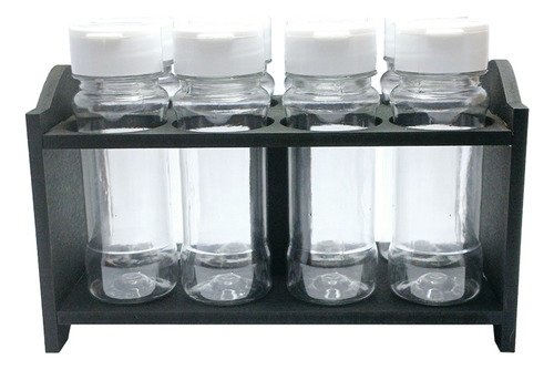 1 Porta Tempero Mdf Preto 8 Frasco 120ml Cristal Fliptop Cap