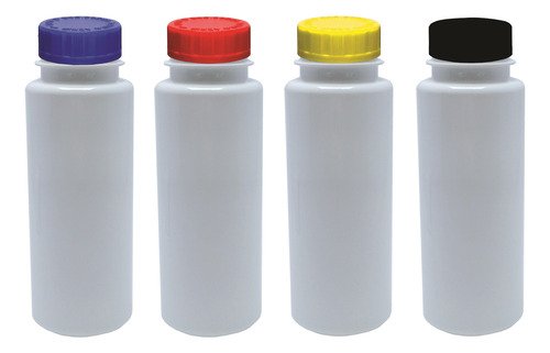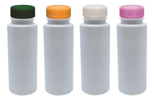 O Kit é composto por 104 Frascos Branco Vazios e 104 Tampas Brancas Child 2 Roscas c/ Escrita