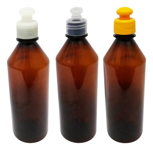 O Kit é composto por 108 Frascos Âmbares Vazios e 108 Tampas Brancas Push Pull