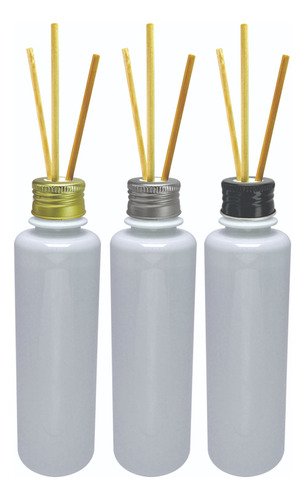 O Kit é composto por 108 Frascos Vazios Cristal, 108 Tampas Pratas com Rosca e 324 Varetas