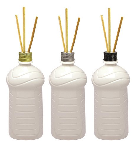 O Kit é composto por 120 Frascos Brancos e 120 Tampas Pratas com Rosca e 360 Varetas