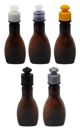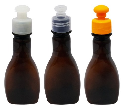 O Kit é composto por 1323 Frascos Âmbares Vazios e 1323 Tampas Brancas Push Pull