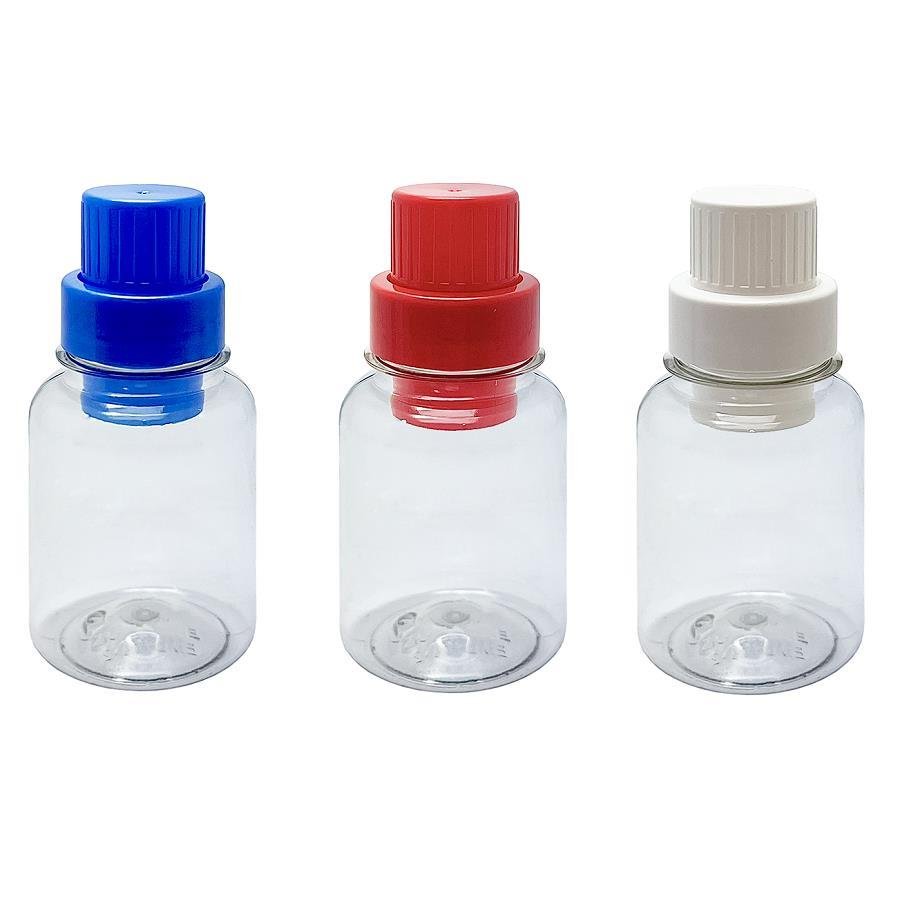 O Kit é composto por 133 Frascos Cristal e 133 Tampas Dosadoras Brancas