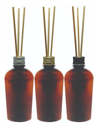O Kit é composto por 135 Frascos Vazios Âmbar, 135 Tampas Pratas com Rosca e 405 Varetas
