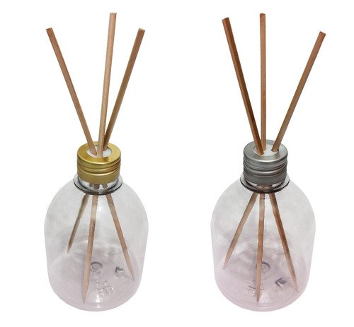 O Kit é composto por 166 Frascos Vazios Cristal, 166 Tampas Pratas com Rosca e 498 Varetas