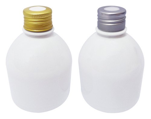 O Kit é composto por 18 Frascos Vazios Brancos e 18 Tampas Pratas com Rosca