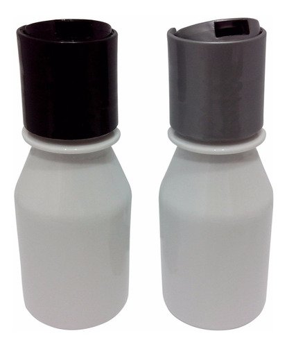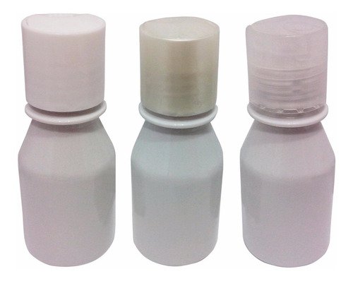 O Kit é composto por 20 Frascos Brancos Vazios e 20 Tampas Brancas Rosca Disk Top