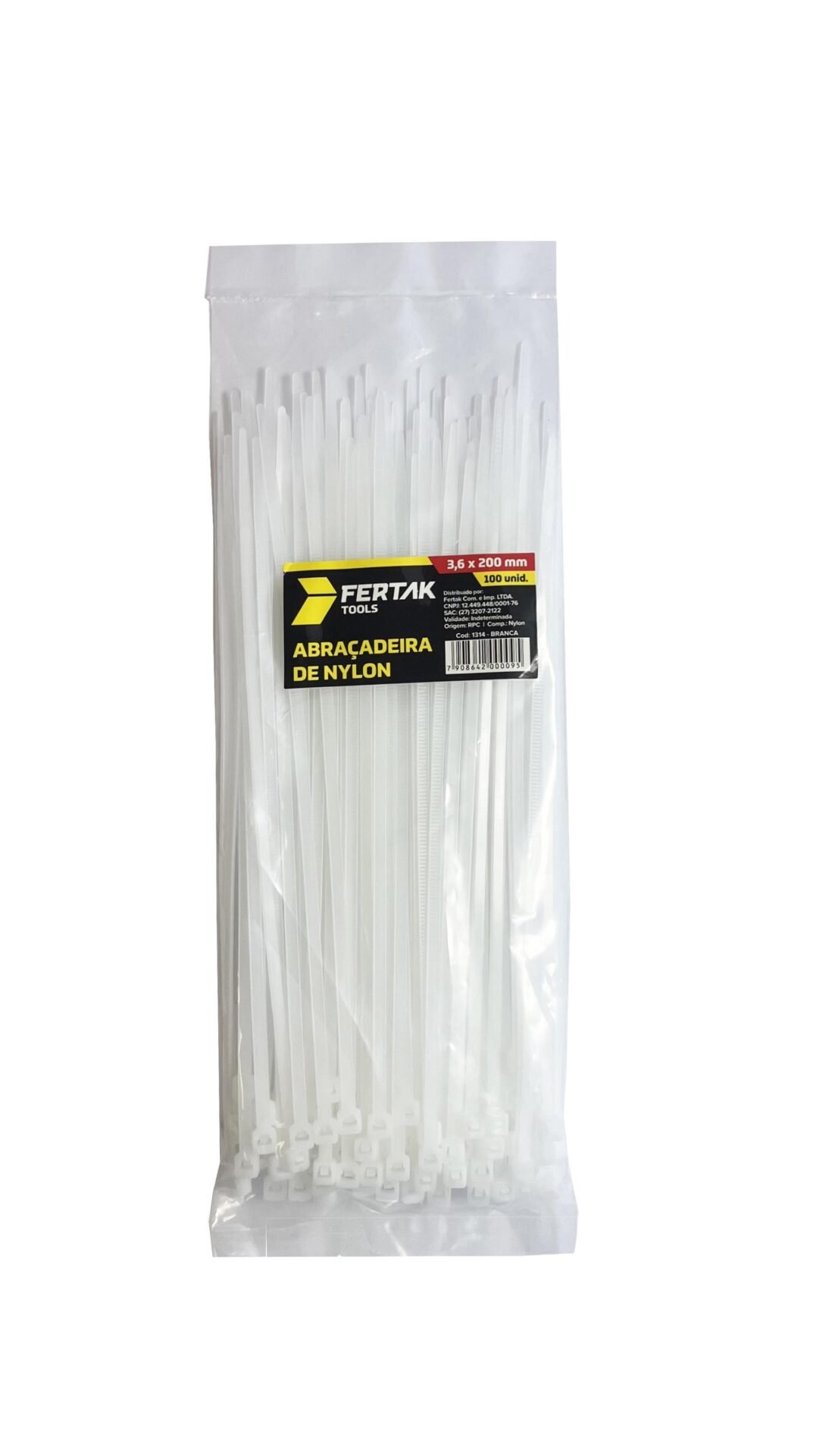 20 Pacotes de abraçadeiras de nylon 3,6mmx200mm com 100 unidades cada.