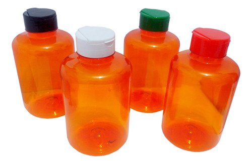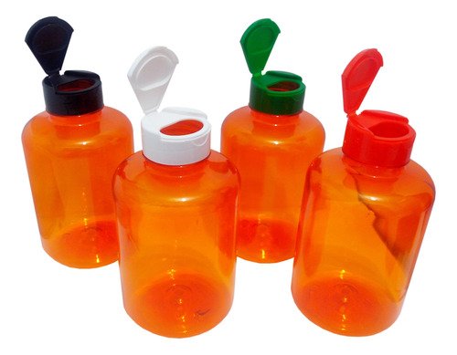 O Kit é composto por 226 Frascos Alaranjados Translucidos e 226 Tampas Brancas com Rosca Fliptop