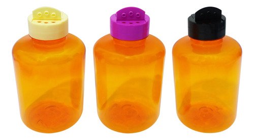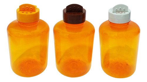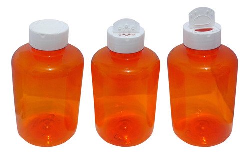 O Kit é composto por 226 Frascos Alaranjados Translucidos e 226 Tampas Brancas Rosca Flip Top