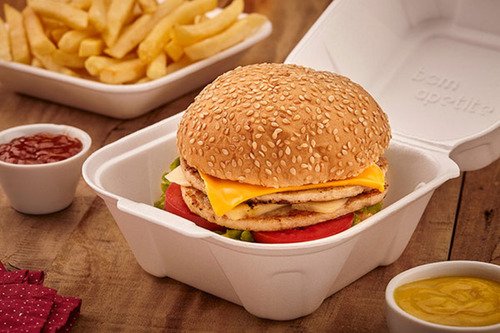 Para acomodar alimentos como Hambúrgueres, Sanduíches, Lanches, Refeições, Porções, Batatas Fritas, Salgadinhos, Petiscos, Saladas, Fatias de Bolos, Tortas, Doces, Sobremesas e Outros. Usada em entregas delivery nas Hamburguerias, Lanchonetes, Bares, Restaurantes, Pastelarias, Petiscarias, Panificadoras e Docerias. Prática de usar com fechamento fácil, proporciona mais resistência, segurança, higiene e mantém por mais tempo a temperatura dos alimentos.