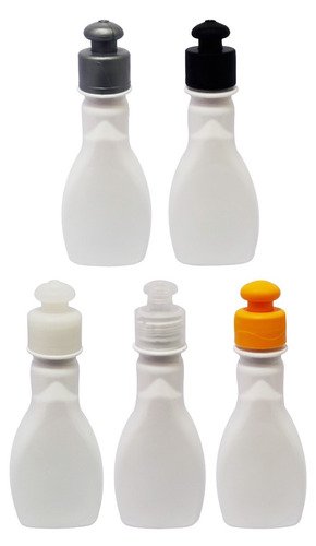O Kit é composto por 26 Frascos Brancos Vazios e 26 Tampas Brancas Push Pull