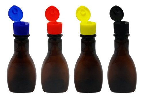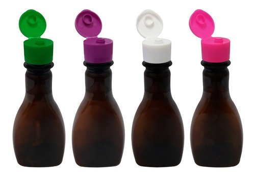 O Kit é composto por 26 Frascos Âmbares e 26 Tampas Brancas Batoque (Pressão) Fliptop