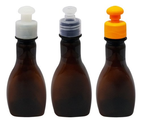 O Kit é composto por 272 Frascos Âmbares Vazios e 272 Tampas Brancas Push Pull