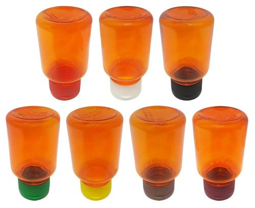 O Kit é composto por 292 Frascos Laranjados e 292 Tampas Brancas Batoque (Pressão) Fliptop