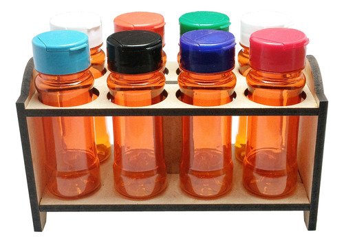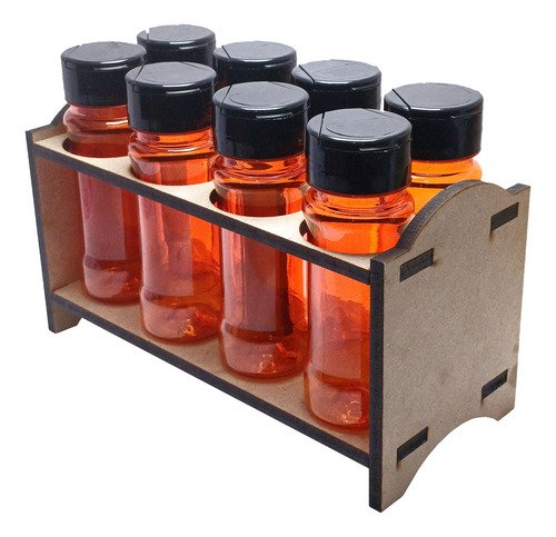 3 Porta Tempero Mdf Cru 8 Frasco 120ml Laranja Fliptop Cap