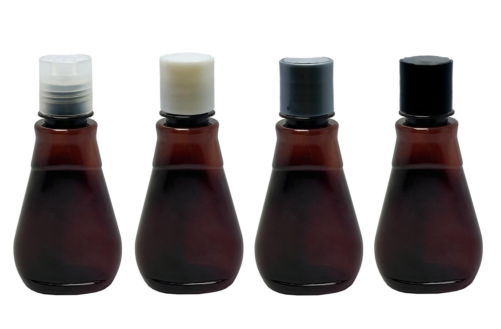 O Kit é composto por 30 Frascos Âmbar e 30 Tampas Brancas Rosca Disk Top