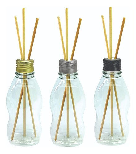O Kit é composto por 34 Frascos Vazios Cristal, 34 Tampas Pratas com Rosca e 102 Varetas