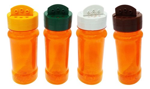 O Kit é composto por 360 Frascos Laranjados Vazios e 360 Tampas Brancas Rosca Flip Top