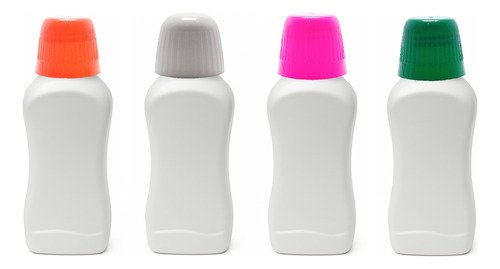 O Kit é composto por 400 Frascos Branco Vazios e 400 Tampas Brancas Dosadoras com Rosca