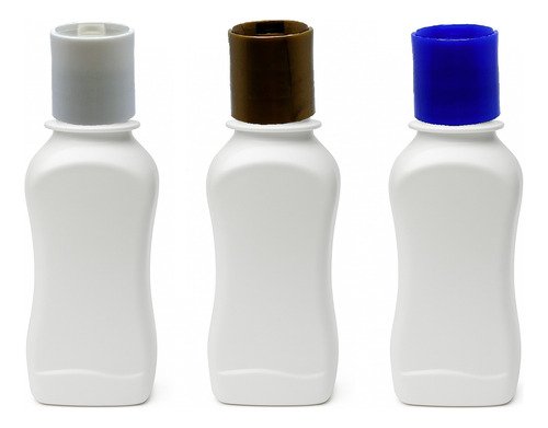 O Kit é composto por 400 Frascos Branco Vazios e 400 Tampas Brancas Rosca Disk Top