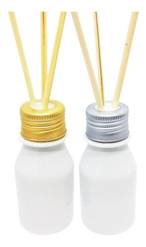 O Kit é composto por 57 Frascos Vazios Brancos, 57 Tampas Pratas com Rosca e 171 Varetas