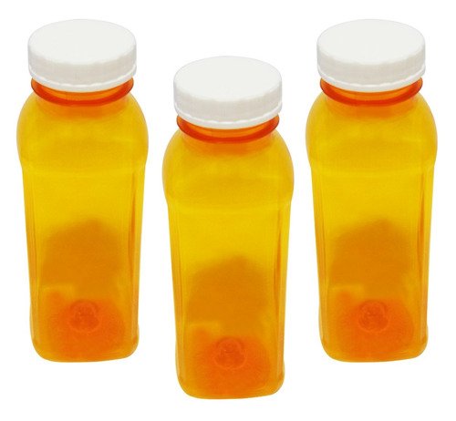 O Kit é composto por 90 Frascos Laranjados Vazios e 90 Tampas Rosca sem Lacre Brancas