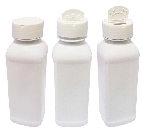 O Kit é composto por 90 Frascos Brancos Vazios e 90 Tampas Brancas Rosca Flip Top