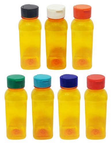 O Kit é composto por 90 Frascos Laranjados e 90 Tampas Brancas com Rosca Fliptop