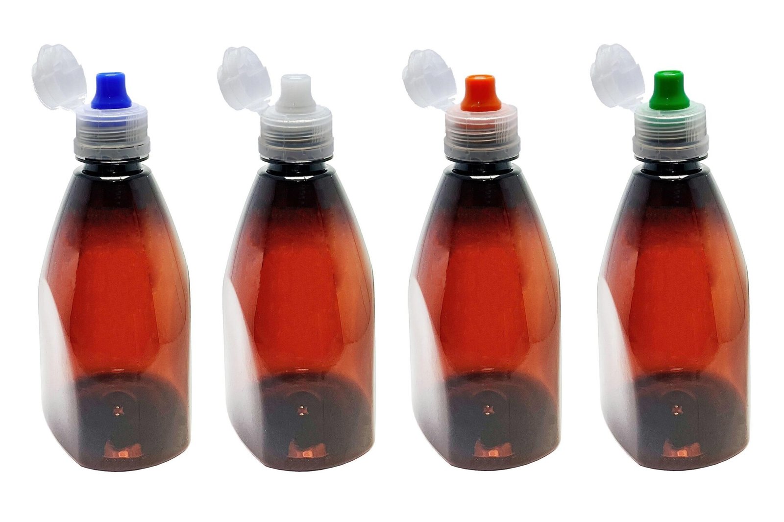 O Kit é composto por 97 Frascos Âmbar Vazios e 97 Tampas Sport com Rosca Incolores